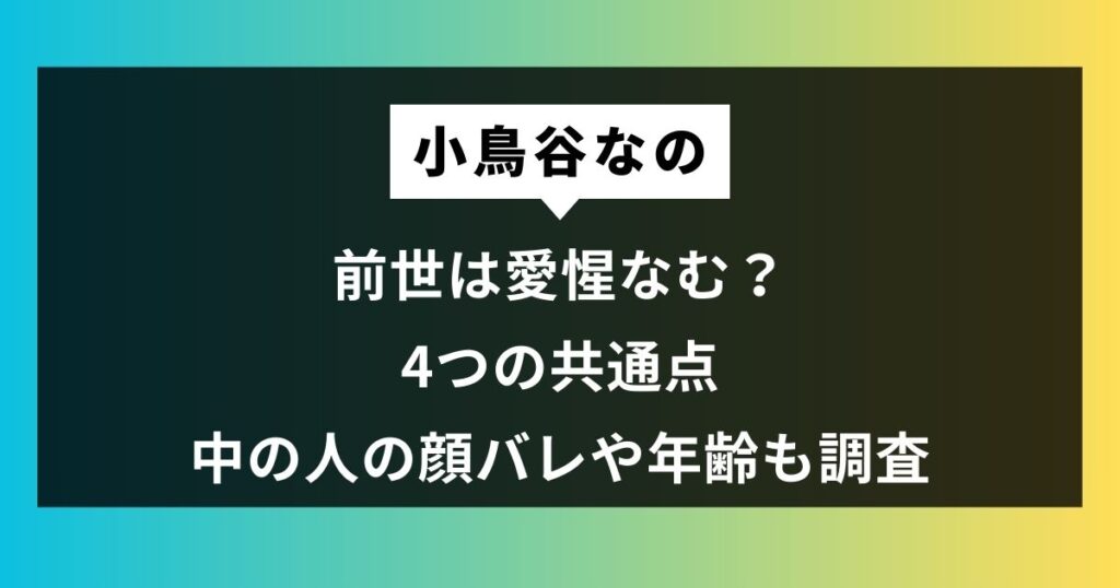 【小鳥谷なの】前世は愛惺なむ?4つの共通点と中の人の顔バレや年齢も調査