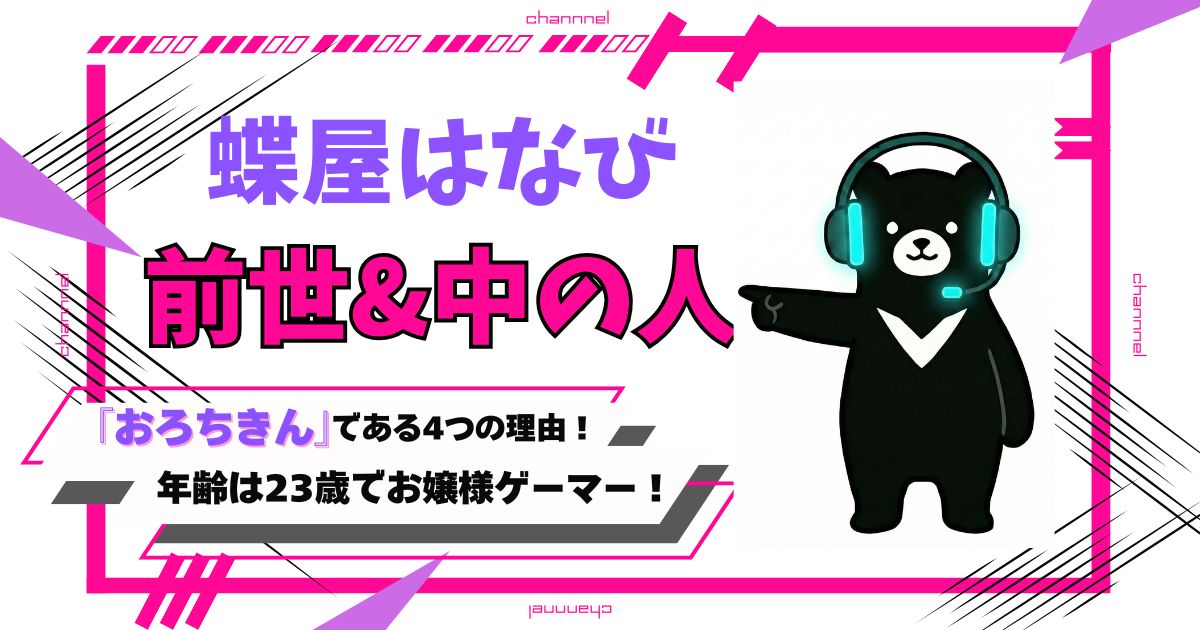 結論からお伝えすると、蝶屋はなびさんの前世は、元個人勢VTuberの「おろちきん」さんである説が非常に濃厚です。 圧倒的なゲームセンスと親しみやすい関西弁トークで、人気を集めていました。 なんで「おろちきん」さんと言われているんだろ? この記事で... -