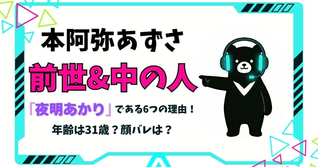 VTuberグループ「すぺしゃりて」のJP1期生として、圧倒的な人気を誇る本阿弥あずさ(ほんあみ あずさ)さんの前世(中の人)は、 個人勢VTuberとして活動していた「夜明あかり」さん である可能性が高いと言われています。 その他にも、 皆口裕子(みなぐ... -
