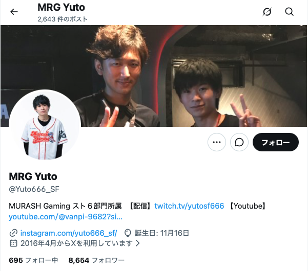 過去には「玉餅かずよ」さんや「アルランディス」さんといったVTuberへ格ゲーのコーチングを行った経験もあり、教え方の上手さや面倒見の良さにも定評があります。