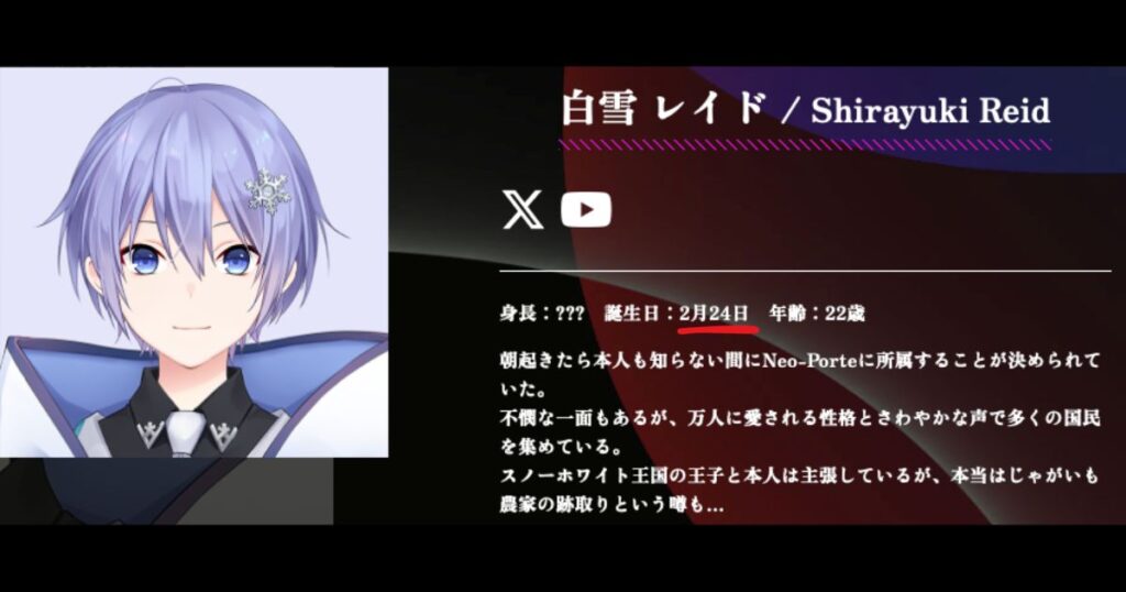 白雪レイドさんは配信でも、2月24日が誕生日であることを公言しています。