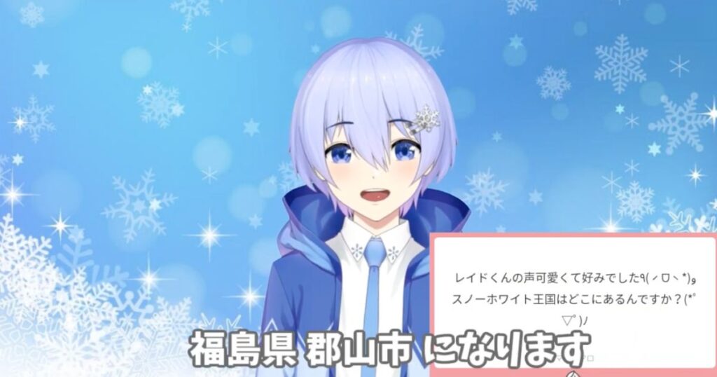 本名は明かされていませんが、出身地は白雪レイドさん自身が