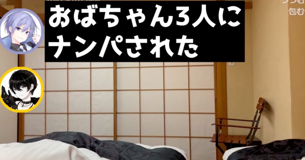この旅行中、温泉からあがって涼んでいるときに「おばちゃん3人にナンパされた」そうです。
